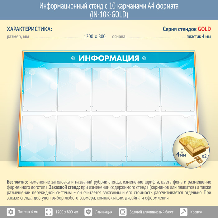 Информационный стенд с 10 карманами А4 формата (IN-10K-GOLD) в Твери купить