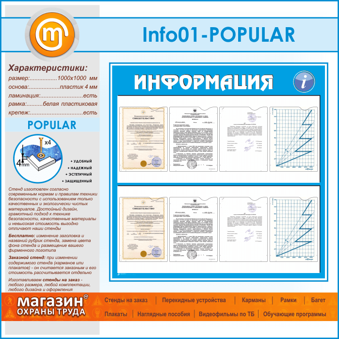 Стенд «Информация» с 8 карманами А4 формата (IN-01-POPULAR) в Твери купить