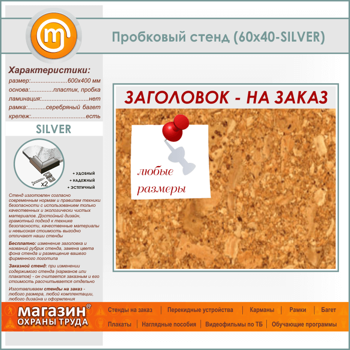 Пробковая доска с заголовком, 60х40 см (IN-06-SILVER) в Твери купить