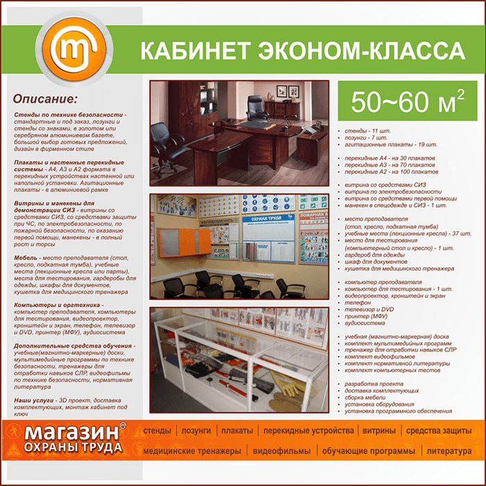 | Площадь кабинета: | 50-60 м2 |
