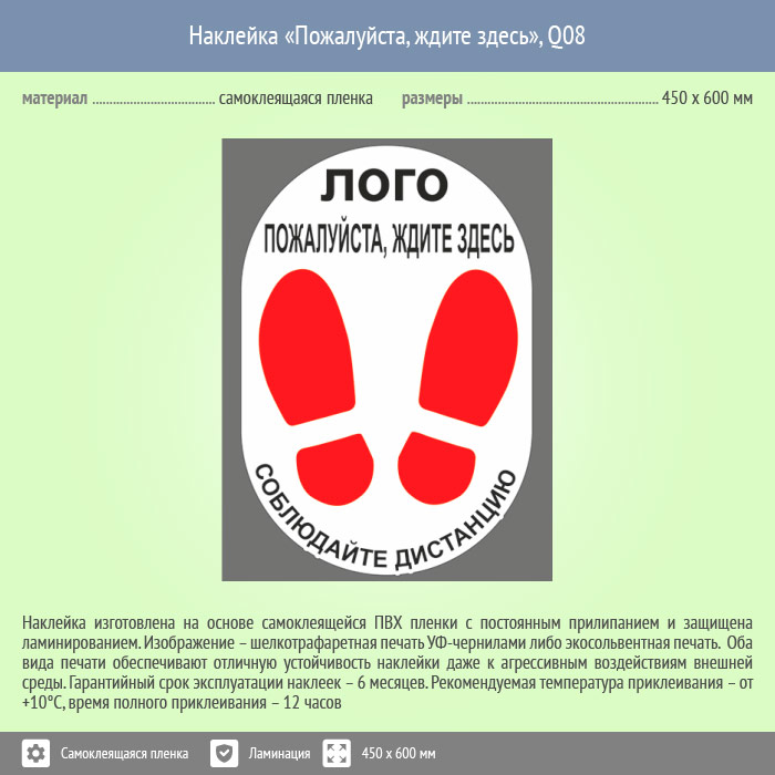 Наклейка на пол «Пожалуйста, ждите здесь», Q08 (пленка c ламинированием, 450х600 мм) в Твери купить