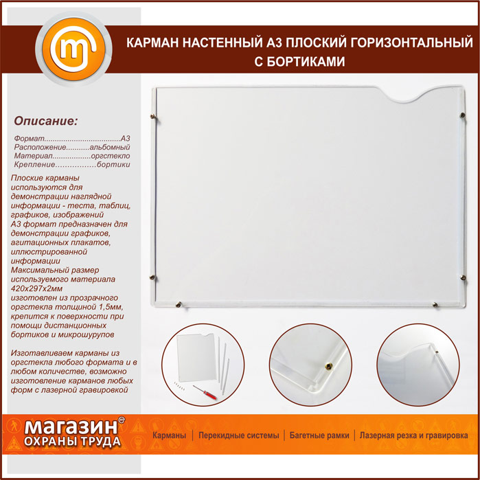 Карман настенный А3 плоский горизонтальный с бортиками в Твери купить