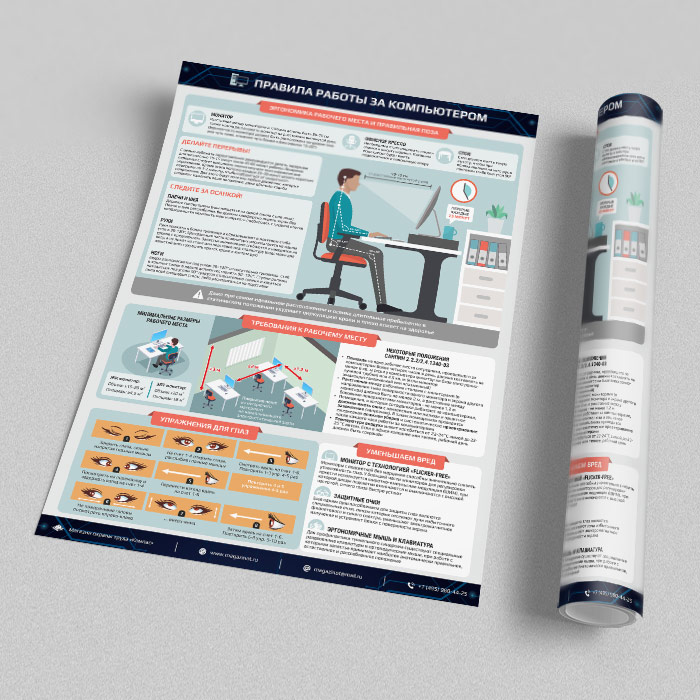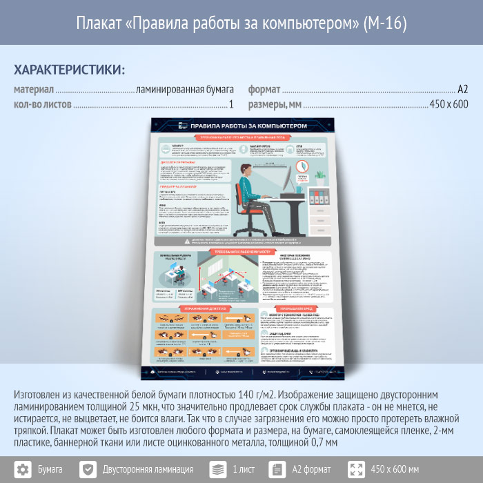 Плакат «Правила работы за компьютером» (М-16, ламинированная бумага, А2, 1 лист) в Твери купить