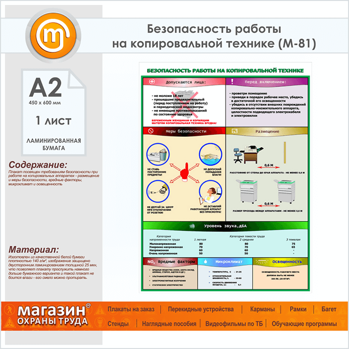Плакат «Безопасность работы на копировальной технике» (М-81, ламинированная бумага, А2, 1 лист) в Твери купить