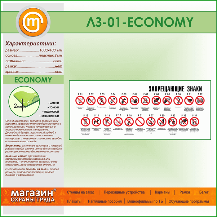 Стенд «Запрещающие знаки» (LZ-01-ECONOMY) в Твери купить