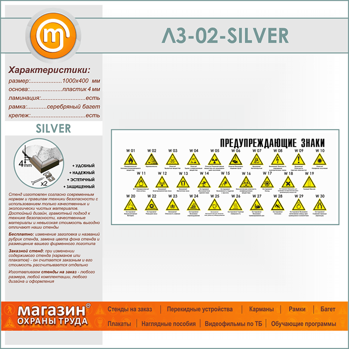 Стенд «Предупреждающие знаки» (LZ-02-SILVER) в Твери купить