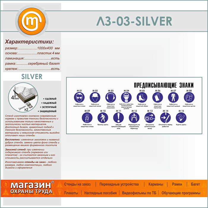 Стенд «Предписывающие знаки» (LZ-03-SILVER) в Твери купить
