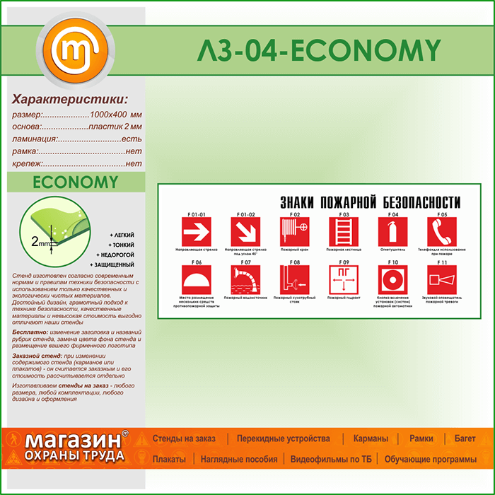 Стенд «Знаки пожарной безопасности» (LZ-04-ECONOMY) в Твери купить