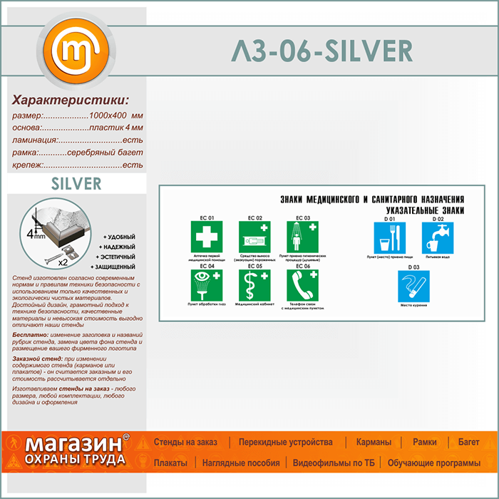 Стенд «Знаки медицинского и санитарного назначения. Указательные знаки» (LZ-06-SILVER) в Твери купить