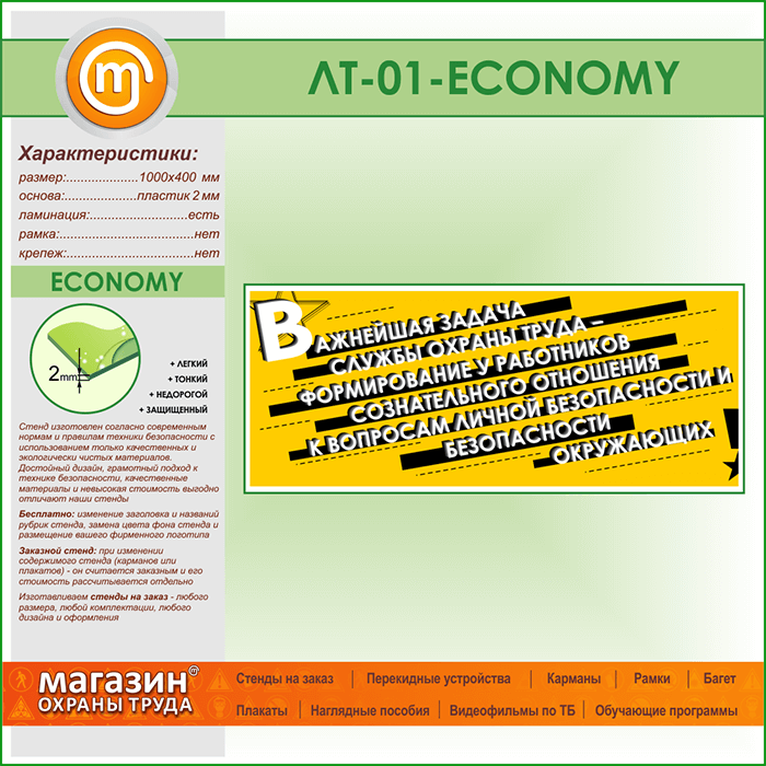 Лозунг «Важнейшая задача службы охраны труда...» (LT-01-ECONOMY) в Твери купить