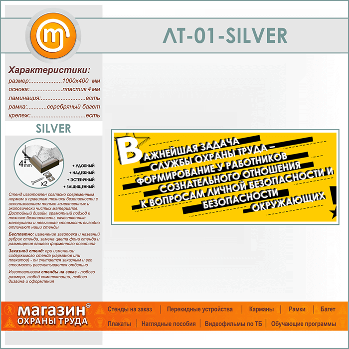 Лозунг «Важнейшая задача службы охраны труда...» (LT-01-SILVER) в Твери купить
