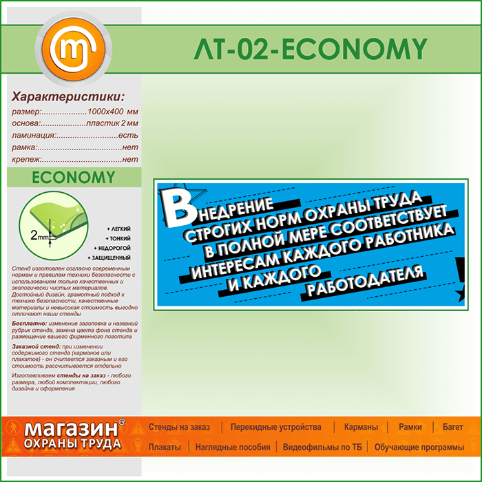 Лозунг «Внедрение строгих норм охраны труда...» (LT-02-ECONOMY) в Твери купить