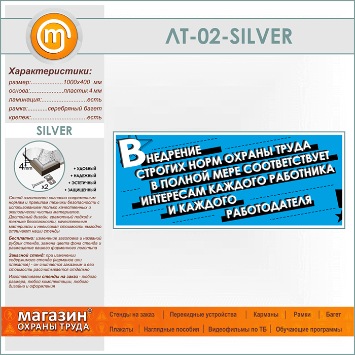 Лозунг «Внедрение строгих норм охраны труда...» (LT-02-SILVER) в Твери купить
