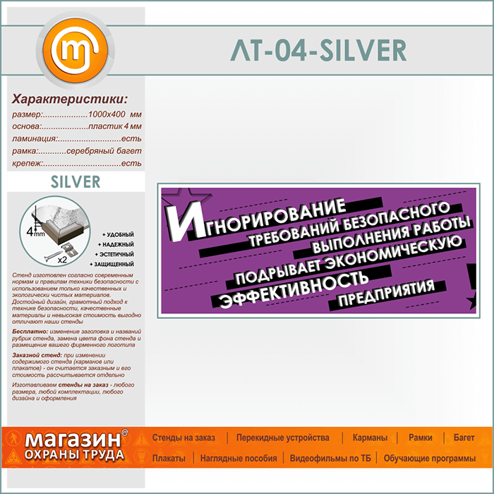 Лозунг «Игнорирование безопасного выполнения работы...» (LT-04-SILVER) в Твери купить