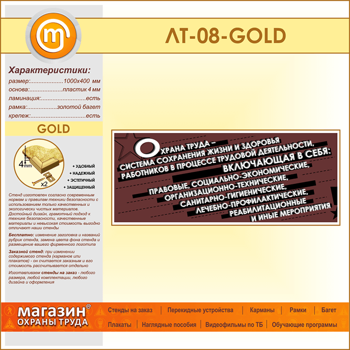 Лозунг «Охрана труда - система сохранения жизни и здоровья...» (LT-08-GOLD) в Твери купить