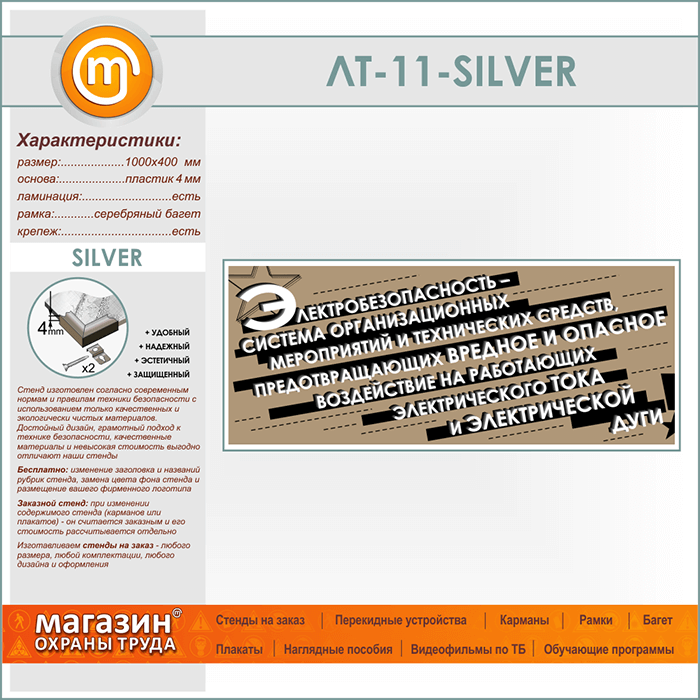 Лозунг «Электробезопасность - система мероприятий...» (LT-11-SILVER) в Твери купить