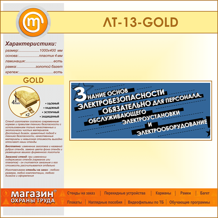 Лозунг «Знание основ электробезопасности обязательно...» (LT-13-GOLD) в Твери купить