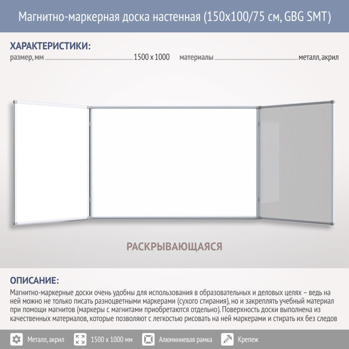 Магнитно-маркерная доска настенная (150x100/75 см, GBG SMT) в Твери купить