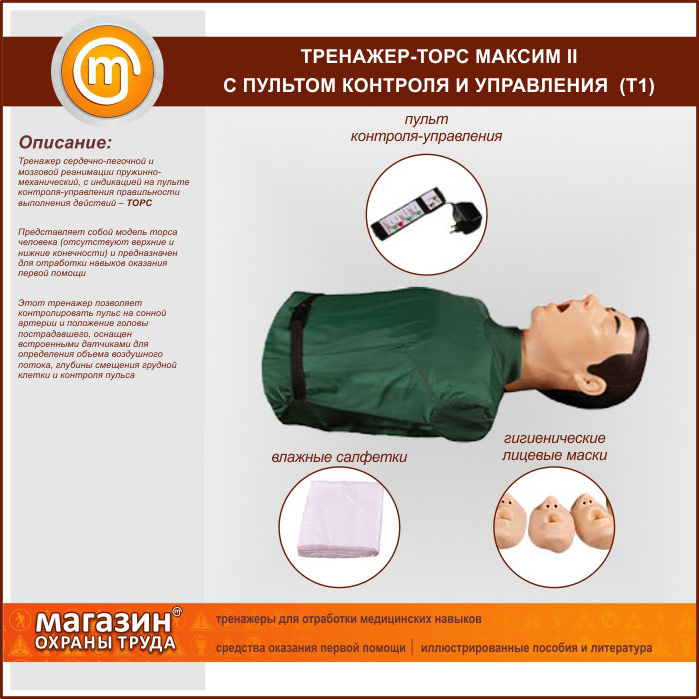 | Тренажер сердечно-легочной и мозговой реанимации «Максим II-01», Т11 В/Р (пружинно-механический с индикацией правильности выполнения действий, манекен) | Тренажер сердечно-легочной и мозговой реанимации «Максим II-01», Т11 В/Р (пружинно-механический с индикацией правильности выполнения действий, манекен) |
