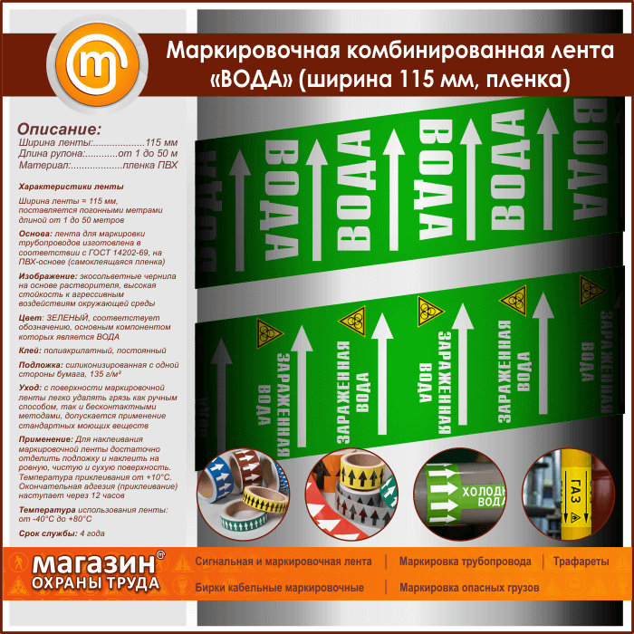 Маркировочная комбинированная лента «ВОДА» (ширина 115 мм, самоклеящаяся плёнка) в Твери купить