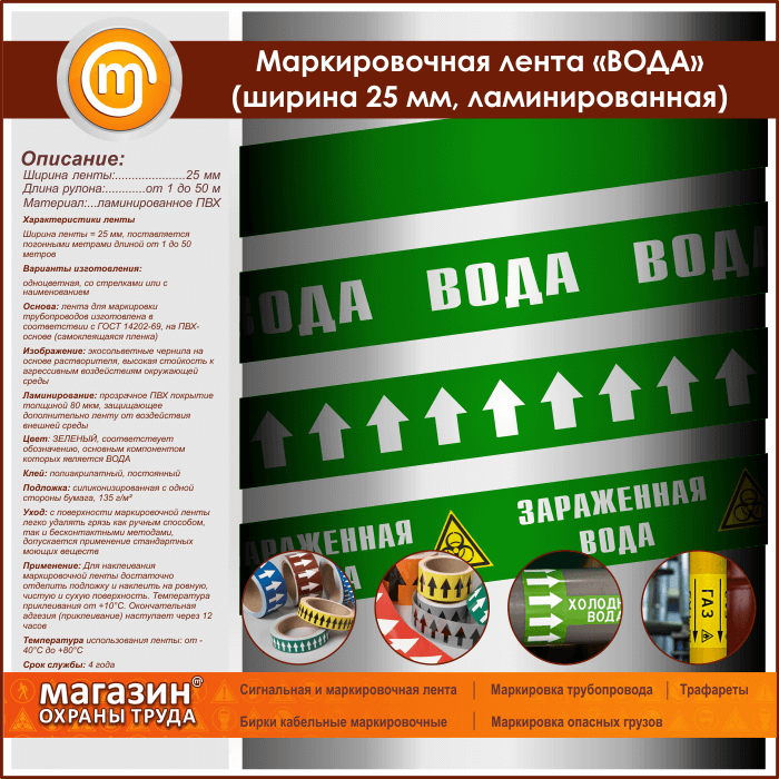 Маркировочная лента «ВОДА» (ширина 25 мм, самоклеящаяся плёнка с ламинированием) в Твери купить