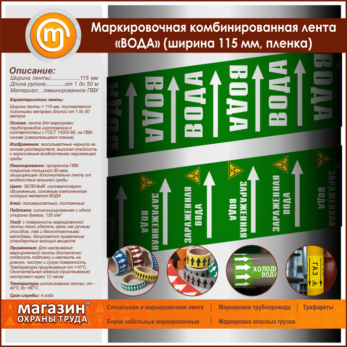 Маркировочная комбинированная лента «ВОДА» (ширина 115 мм, самоклеящаяся плёнка с ламинированием) в Твери купить