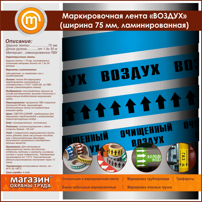 Маркировочная лента «ВОЗДУХ» (ширина 75 мм, самоклеящаяся плёнка) в Твери купить