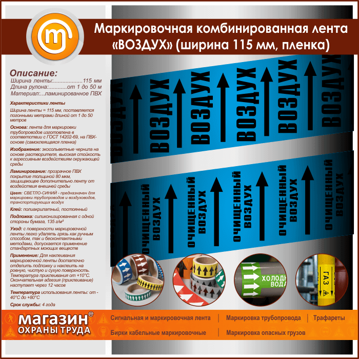 Маркировочная комбинированная лента «ВОЗДУХ» (ширина 115 мм, самоклеящаяся плёнка) в Твери купить