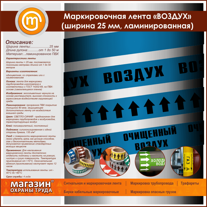 Маркировочная лента «ВОЗДУХ» (ширина 25 мм, самоклеящаяся плёнка с ламинированием) в Твери купить