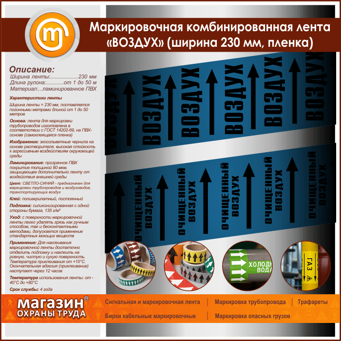 Маркировочная комбинированная лента «ВОЗДУХ» (ширина 230 мм, самоклеящаяся плёнка с ламинированием) в Твери купить