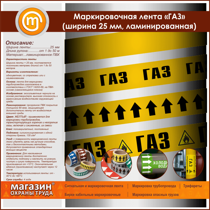 Маркировочная лента «ГАЗ» (ширина 25 мм, самоклеящаяся плёнка с ламинированием) в Твери купить