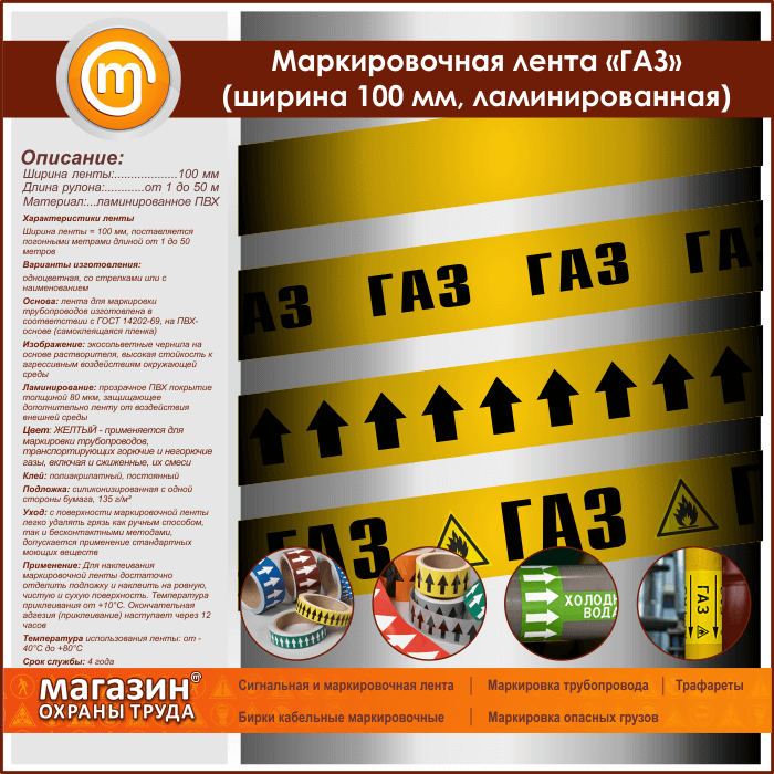 Маркировочная лента «ГАЗ» (ширина 100 мм, самоклеящаяся плёнка с ламинированием) в Твери купить