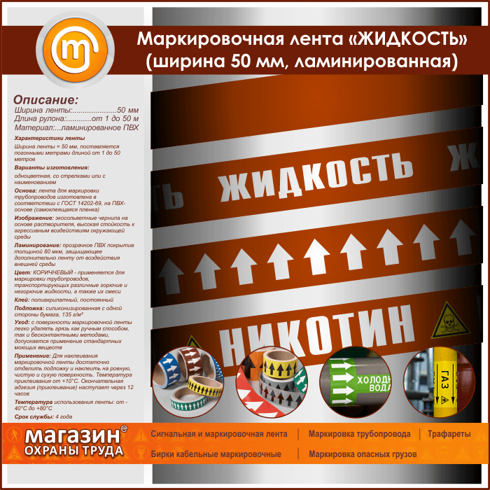 Маркировочная лента «ЖИДКОСТЬ» (ширина 50 мм, самоклеящаяся плёнка) в Твери купить