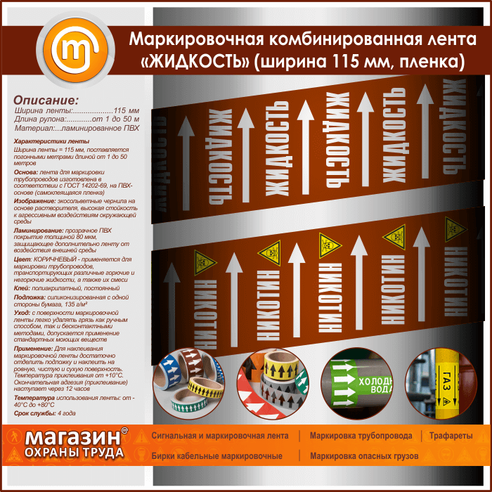 Маркировочная комбинированная лента «ЖИДКОСТЬ» (ширина 115 мм, самоклеящаяся плёнка) в Твери купить