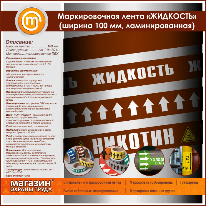 Маркировочная лента «ЖИДКОСТЬ» (ширина 100 мм, самоклеящаяся плёнка с ламинированием) в Твери купить
