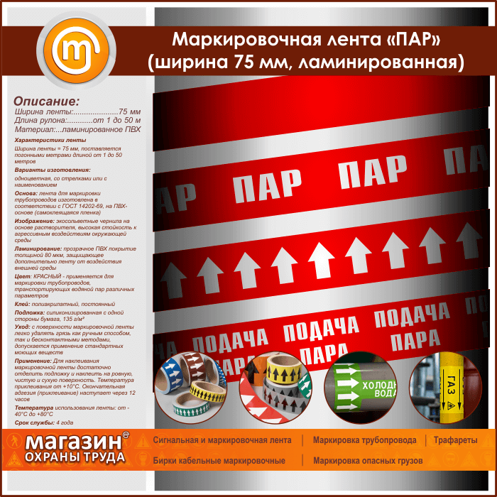 Маркировочная лента «ПАР» (ширина 75 мм, самоклеящаяся плёнка) в Твери купить