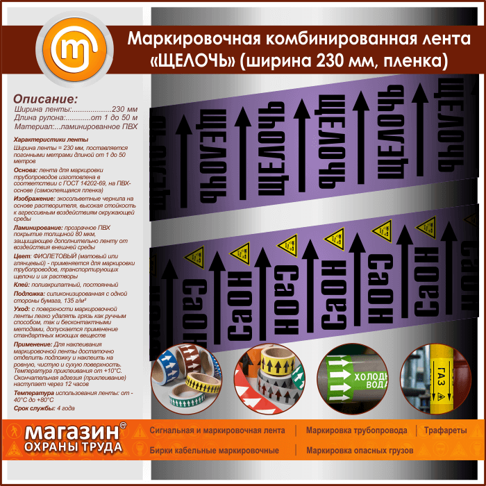 Маркировочная комбинированная лента «ЩЕЛОЧЬ» (ширина 230 мм, самоклеящаяся плёнка) в Твери купить