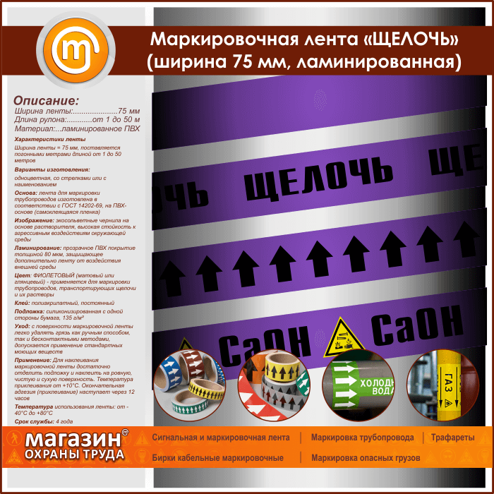 Маркировочная лента «ЩЕЛОЧЬ» (ширина 75 мм, самоклеящаяся плёнка с ламинированием) в Твери купить