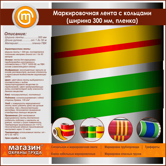 Маркировочная лента с кольцами (ширина 300 мм, самоклеящаяся плёнка) в Твери купить