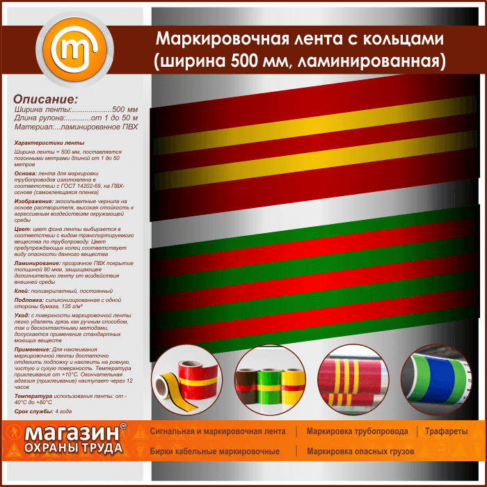 Маркировочная лента с кольцами (ширина 500 мм, самоклеящаяся плёнка с ламинированием) в Твери купить
