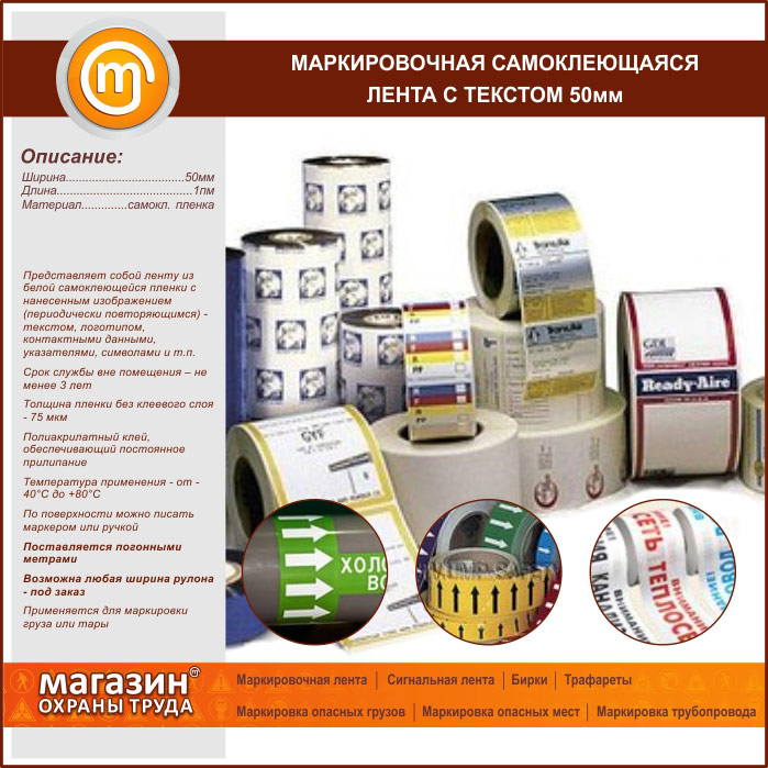 Маркировочная самоклеящаяся лента с текстом 50 мм в Твери купить