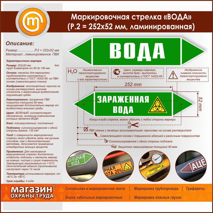 Маркировочная стрелка «ВОДА» (P.2 = 252х52 мм, самоклеящаяся плёнка с ламинированием) в Твери купить