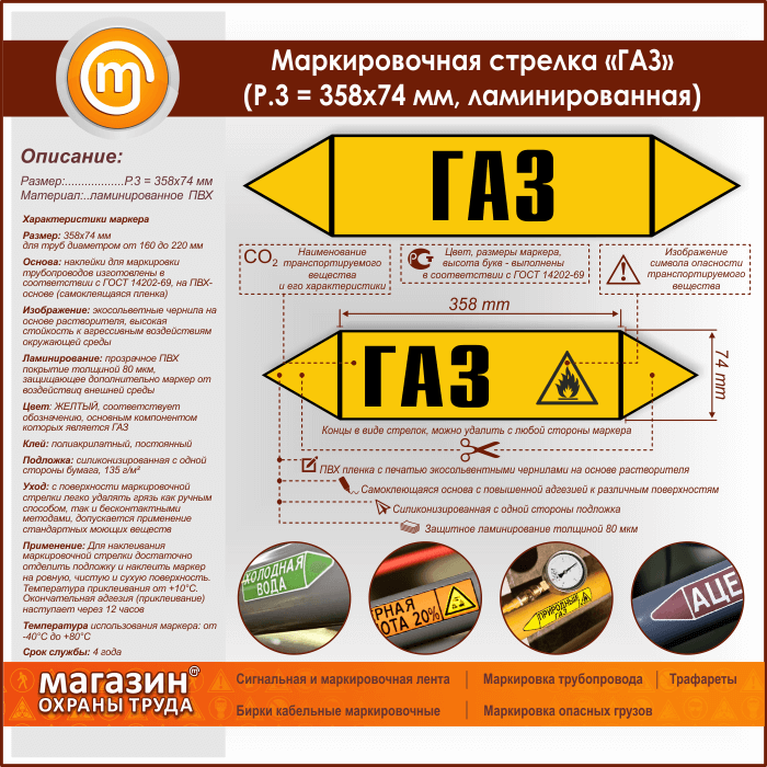 Маркировочная стрелка «ГАЗ» (P.3 = 358х74 мм, самоклеящаяся плёнка с ламинированием) в Твери купить