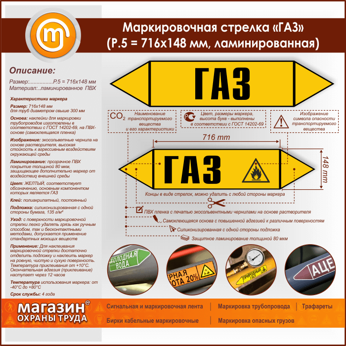 Маркировочная стрелка «ГАЗ» (P.5 = 716х148 мм, самоклеящаяся плёнка с ламинированием) в Твери купить