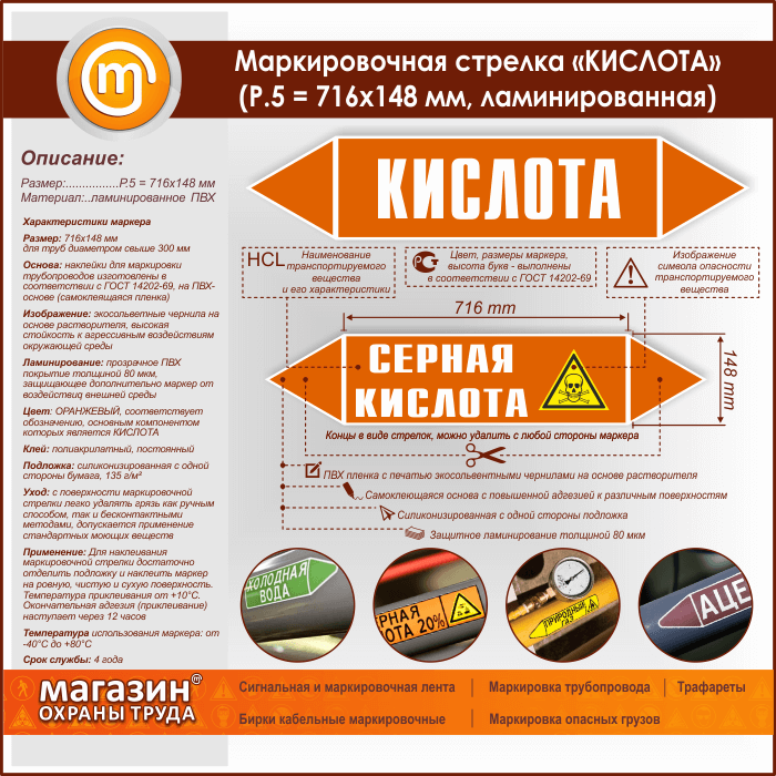 Маркировочная стрелка «КИСЛОТА» (P.5 = 716х148 мм, самоклеящаяся плёнка с ламинированием) в Твери купить