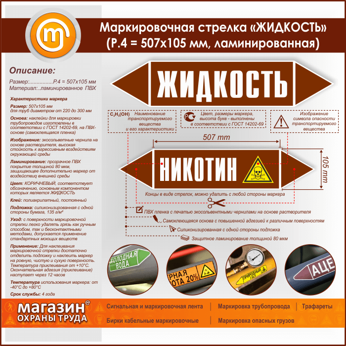 Маркировочная стрелка «ЖИДКОСТЬ»(P.4 = 507х105 мм, самоклеящаяся плёнка с ламинированием) в Твери купить