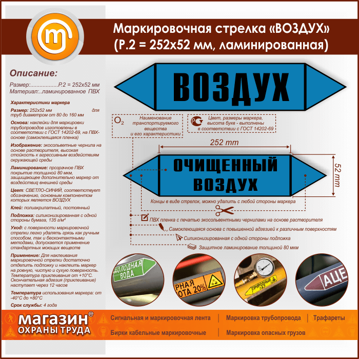 Маркировочная стрелка «ВОЗДУХ» (P.2 = 252х52 мм, самоклеящаяся плёнка с ламинированием) в Твери купить