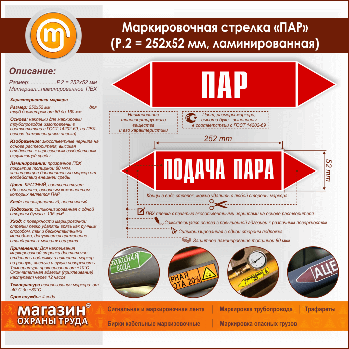 Маркировочная стрелка «ПАР» (P.2 = 252х52 мм, самоклеящаяся плёнка с ламинированием) в Твери купить