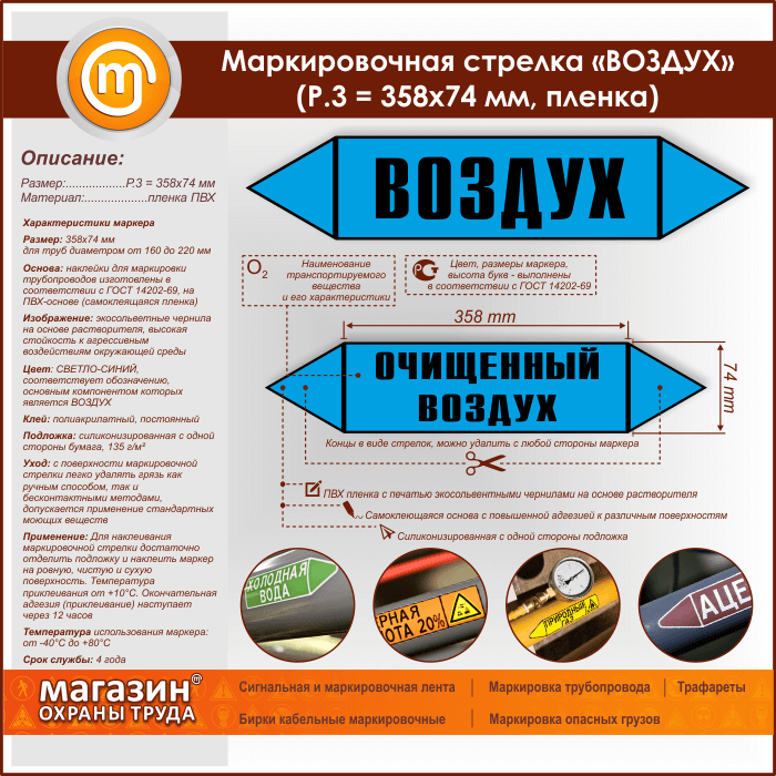Маркировочная стрелка «ВОЗДУХ» (P.3 = 358х74 мм, самоклеящаяся плёнка) в Твери купить