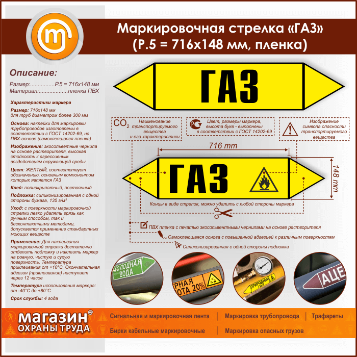 Маркировочная стрелка «ГАЗ» (P.5 = 716х148 мм, самоклеящаяся плёнка) в Твери купить